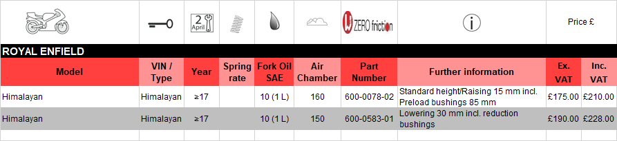 EXACTREP | Wilbers Fork Springs and Rear Shock AbsorbersRoyal EnfieldFork Springs